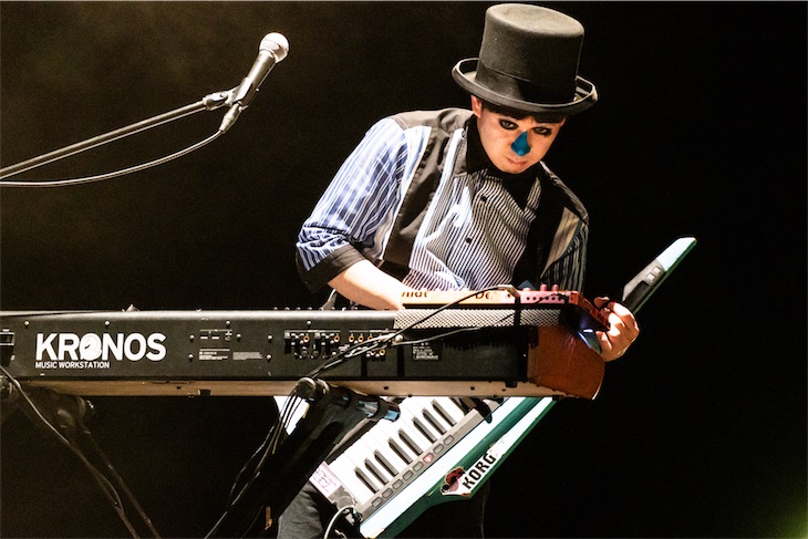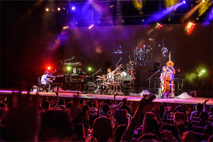 ここで再びH ZETTRIO 3人の演奏に戻ると、この冬ツアーのシンボルとなった“M”“K”“N”の文字をあしらったバボットと呼ばれるオブジェが立ち上がる。“PIANO CRAZE”“DERBY 〜栄光の道しるべ〜”と続き、H ZETT Mが再び上段のキーボードの前に立つと“Mysterious Superheroes”。今年3月に発売された4枚目のアルバムのタイトル曲だ。激しい展開の中に垣間見えるポップさはH ZETTRIOの真骨頂。勢いそのままに“Beautiful Flight”“パノラマビュー”と畳み掛け、最後は“Dancing in the mood”で本編が終了した。