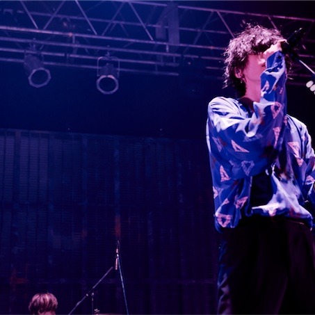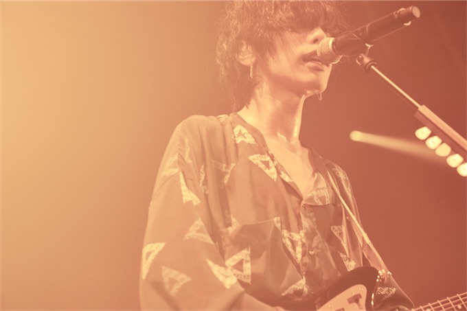 4人が激しくアグレッシブな演奏を魅せた「Black Sheep」に続いては、「12月10日に『かいじゅうずかん』という書籍が出るんですけど。それのために書いた曲が一曲あって。それをやりたいと思います」と、新曲「love」を披露。この日の会場でも先行販売された初の単行本『かいじゅうずかん』に付属するCDに収録された曲だ。ゆっくりとしたテンポで、後半に向けてどんどんとスケール感を増していく壮大なナンバー。ステージの各所、アンプやドラムセットに設置された電球の光が光る。最後には身体全体を振り絞るようにして歌声を響かせる。