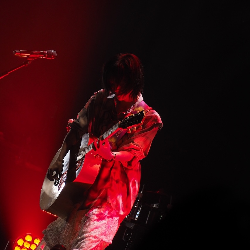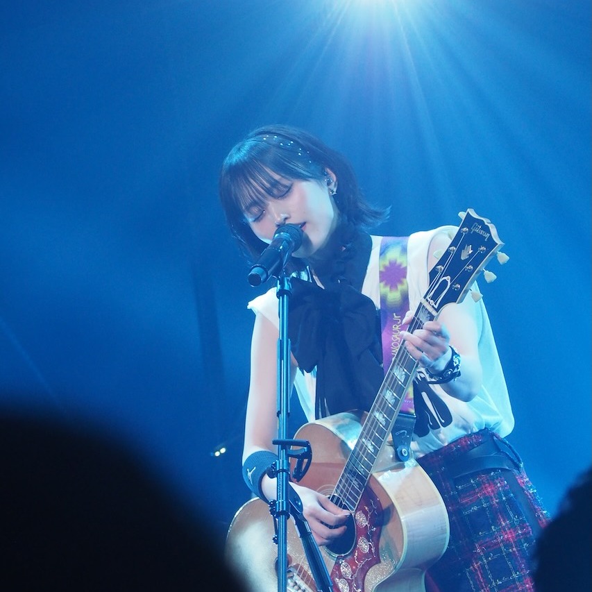 続く「君とフィルムカメラ」では、夕陽のような照明とブルーが交錯する。アコースティックギターを抱え、日常の風景をなぞるように歌われるその音が、会場を一気に彼女の描く時間の流れへと引き込んでいった。29日は「yonder」が披露されている。