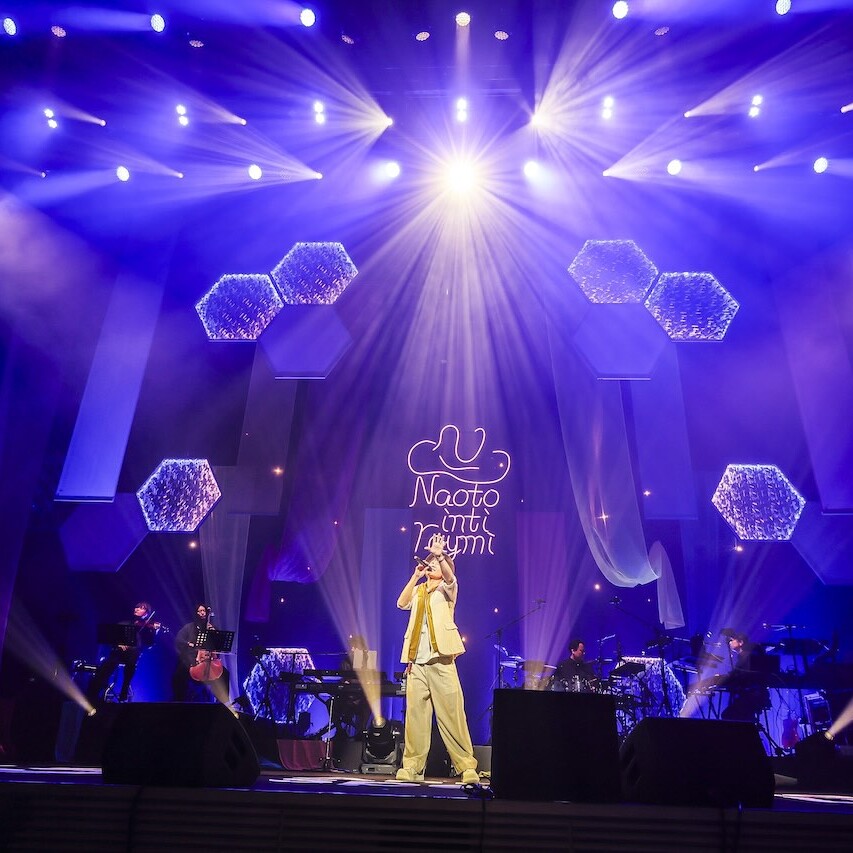 サポートバンドがファンキーな演奏で客席の熱を高める中、クラップを煽りながらナオトがステージイン。ライブは「アカルイミライ」で幕を開けた。この日の公演では、ナオトのライブ史上初の試みとして、生のストリングス(バイオリン、チェロ)が参加。お馴染みのサポートメンバーと共に、流麗かつ迫力あるアンサンブルを響かせる。MCによると、ストリングスをバンドに入れることは2020年の10周年のタイミングで計画していたそうなのだが、コロナ禍の影響を受けてライブ自体が中止になってしまったとのこと。「6年越しに叶えることができた」と喜ぶナオトは、時折ストリングスへ視線を送りながら、楽しげに歌を届けていく。