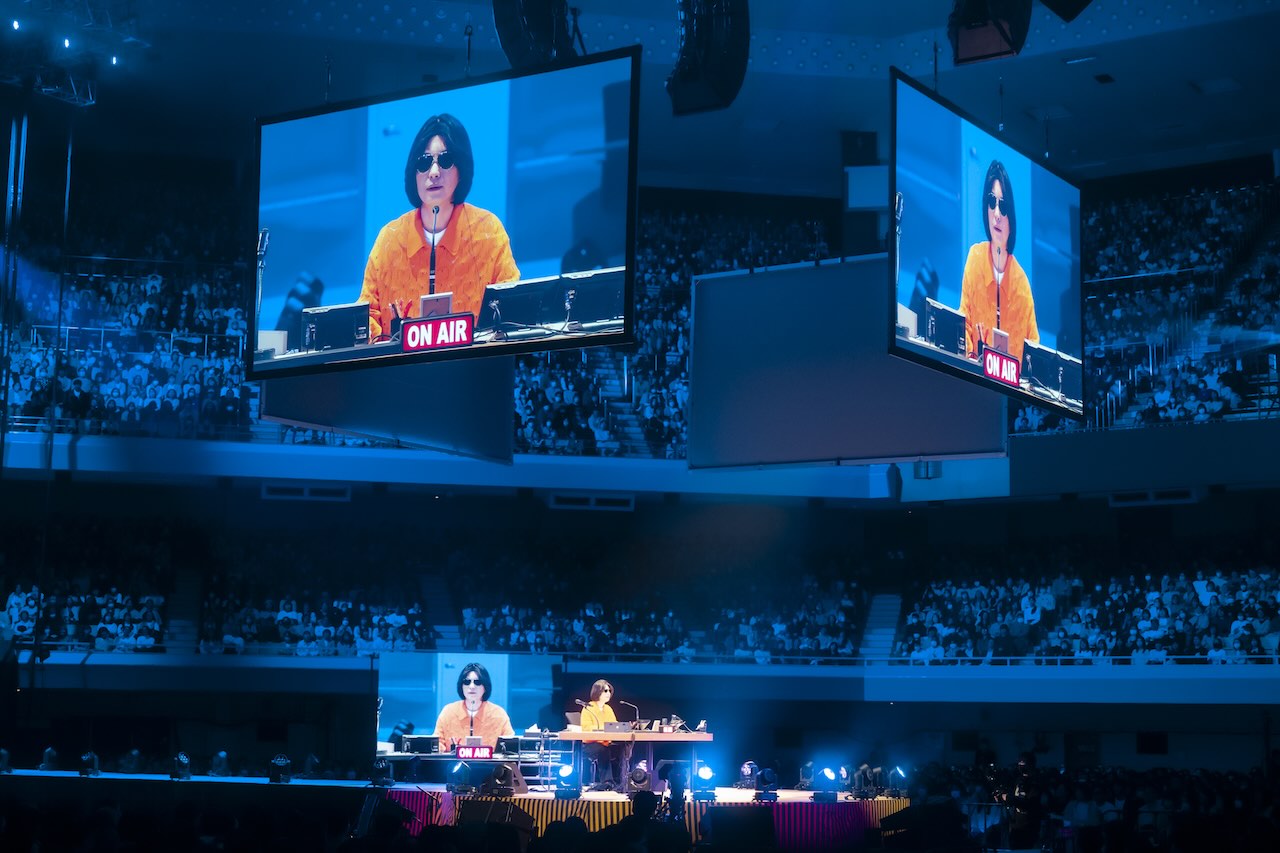 さらに森戸知沙希による『ミュージック・パーティー』の“特別版”も挟んだところで開演時間になると、星野がステージのラジオブースに登場。時報とともに「みなさんこんばんは、星野源です。2026年3月8日日曜日。星野源のオールナイトニッポン in 日本武道館、生放送でお送りします」と“いつも通り”挨拶、リスナーから寄せられたメールを読み始める。読み終わるたびに拍手が巻き起こり「なんだか新鮮だなぁ」と感想を語ったり、「会場に入って一番最初にトイレをチェックした」「今日の花粉すごくない?」と普段のようなフリートークを展開して、リスナーとの交流を楽しんだ。