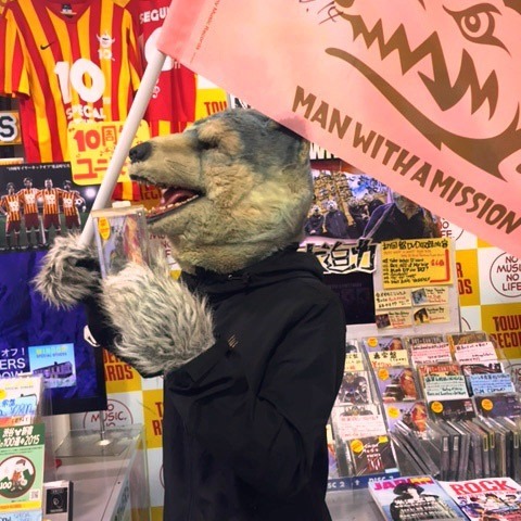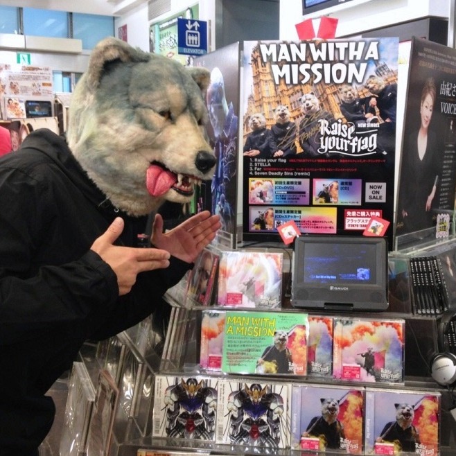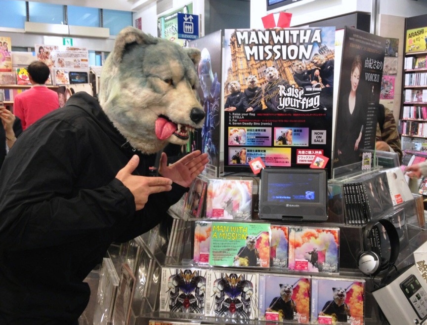 なお、MAN WITH A MISSIONは本日、“〜MAN WITH A MISSION 「Raise your flag」発売記念〜『都内ノCD ショップ5店舗ニフラッグ掲ゲニ行ッテ来ル(「゜Д゜)「ガウガウ』”と題した企画を敢行。メンバー5匹それぞれがばらばらとなり、オリジナルの旗(フラッグ)を携えて都内のCDショップ5店を訪問。訪問店は一切非公開の中、メンバーがCDショップに向かう道中にTwitterでつぶやくヒントを頼りに、メンバーを探すファンも多数現れたりする等で、一時Twitterトレンド入り。都内のファンのみならず、全国のファンもTwitterで楽しめるなど、新作発売日を大いに盛り上げた。