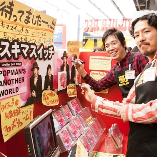 4月12日(火)、スキマスイッチがアナザー・ベストアルバム「POPMAN’S ANOTHER WORLD」(4月13日発売)の発売を記念して、銀座山野楽器本店、SHIBUYA TSUTAYA、タワーレコード渋谷店の3店舗にて“1日店員さん体験企画“を行った。