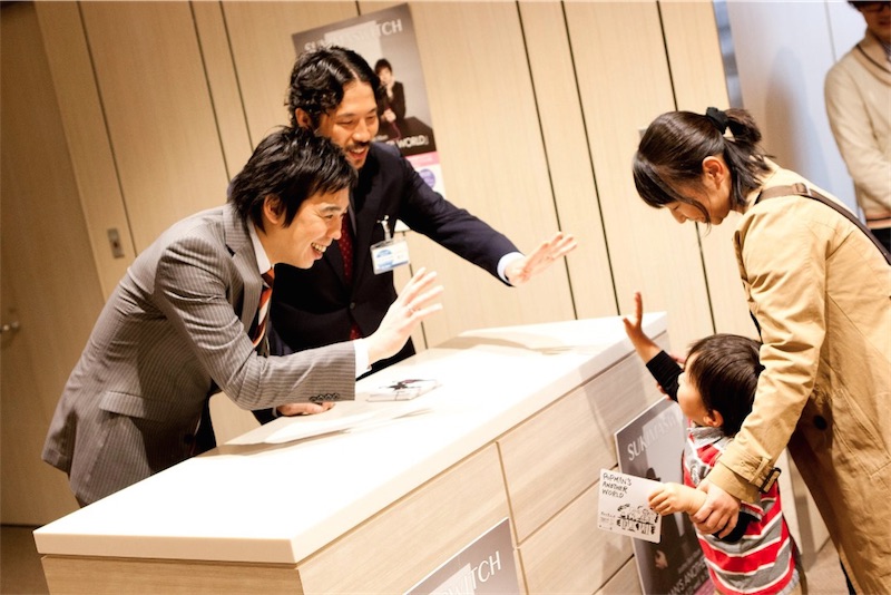銀座山野楽器本店に制服のスーツを着用したスキマスイッチのふたりが到着。ネームプレートを胸につけ、早速、お店のスキマスイッチPOPのサイン書きからお仕事スタート。別会場には抽選で当選したお客さまが、今作のアルバム全27曲ミュージック・ビデオを鑑賞しながら、今か今かとスキマスイッチの登場を待ちわびている。ミュージック・ビデオの上映が終わり、会場の外にはスキマスイッチのふたりがアルバム特典のアナザージャケットをお客さまに手渡し、お見送りした。