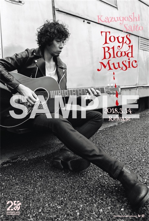 さらに、ニューアルバム「Toys Blood Music」 (VIZL-1800 / VICL-65100 / VIJL-60400)を予約、購入して頂いた方に先着でプレゼントされる各チェーンオリジナル特典「斉藤和義オリジナルポスター」の全5種類の絵柄を公開した。こちらもあわせてチェックして欲しい!