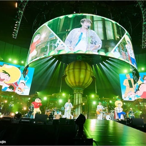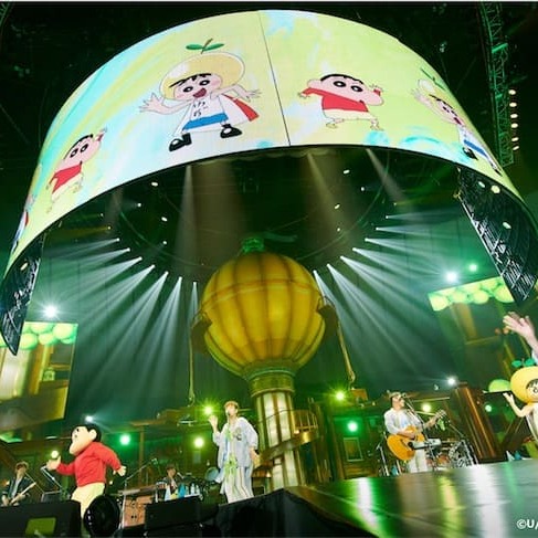 この日はスペシャルゲストとして、横浜アリーナのステージにゆずマンと“しんちゃん”こと野原しんのすけが登場し、会場は大盛り上がり。ゆずとともに、人気振付師・ラッキィ池田氏が手がけた“スカッとダンス”をパフォーマンス。ビジョンにはアニメの映像も映し出され、観客一体のダンスで、ライブを盛り上げた。