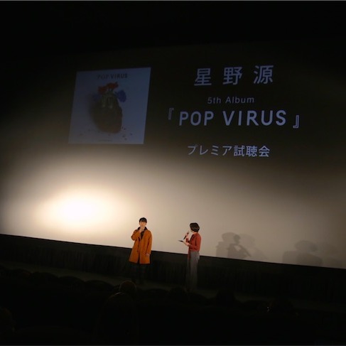 そんな中、星野源の会員限定WEBサービス【YELLOW PASS】の企画として、“『POP VIRUS』プレミア試聴会”が本日、全国5大都市(札幌・東京・大阪・名古屋・福岡)10館の映画館にて開催された。2万通以上の応募から抽選で計2,000名が招待され、アルバム『POP VIRUS』の世界を体感した。
