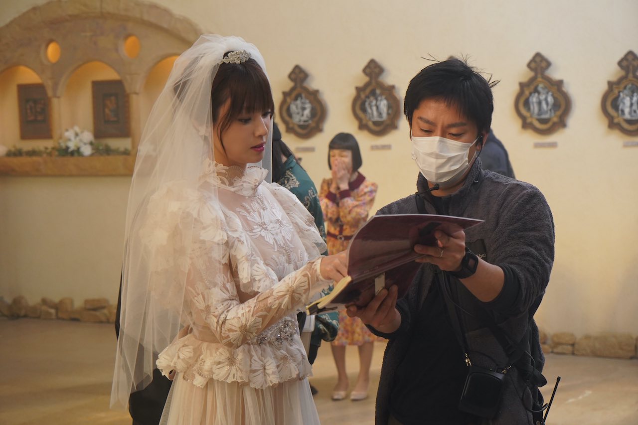この度解禁されたのは、本作の華と和馬のウェディングシーンのオフショット。ドラマから数々の困難を乗り越えてきた華と和馬が遂に結婚式を挙げ、永遠の愛を誓う!純白のドレスとタキシードに身を包む二人は、息を呑むほど美しい…。また、スタッフと台本や映像を確認している深田や大貫、マルシアの姿も。一体どの様なウェディングシーンとなっているのだろうか。