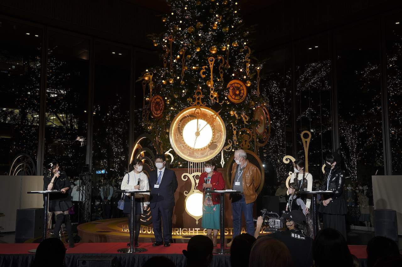 カウントダウンの後、ユーミンがイルミネーション点灯のスイッチを押すと、高さ約8mの生木を使用したクリスマスツリー「YUMING’S TIME MACHINE TREE」が光に包まれた。時計の針や振り子が装飾され、ユーミンの50年を旅するような空間が演出されたツリーにユーミンは「見事点灯しましたね!」と感動した様子で見入っていた。